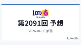 ロト6ロト6 第2091回 予想(結果・振り返り) ロト6(2026年4月6日)の予想番号を掲載します。本記事は過去データを参考にした「予想・分析メモ」であり、当選を保証するものではありません。予想番号予想151618242839予想2236111640予想351424263538予想412... 2026.04.02ロト6次回予想