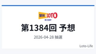 ミニロトミニロト 第1383回 予想(結果・振り返り) ミニロト(2026年4月21日)の予想番号を掲載します。本記事は過去データを参考にした「予想・分析メモ」であり、当選を保証するものではありません。予想番号予想11826293031予想238162331予想349172324予想461924... 2026.04.14ミニロト次回予想