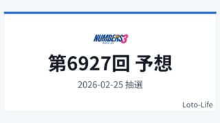 ナンバーズ3ナンバーズ3 第6928回 予想(結果・振り返り) ナンバーズ3(2026年2月26日)の予想番号を掲載します。本記事は過去データを参考にした「予想・分析メモ」であり、当選を保証するものではありません。予想番号予想1306予想2176予想3359予想4273予想5193直近5回の抽選結果回号... 2026.02.25ナンバーズ3次回予想