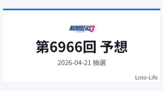 ナンバーズ3ナンバーズ3 第6966回 予想(結果・振り返り) ナンバーズ3(2026年4月21日)の予想番号を掲載します。本記事は過去データを参考にした「予想・分析メモ」であり、当選を保証するものではありません。予想番号予想1395予想2047予想3902予想4025予想5819直近5回の抽選結果回号... 2026.04.20ナンバーズ3次回予想