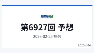 ナンバーズ4ナンバーズ4 第6926回 予想(結果・振り返り) ナンバーズ4(2026年2月24日)の予想番号を掲載します。本記事は過去データを参考にした「予想・分析メモ」であり、当選を保証するものではありません。予想番号予想17135予想29570予想37825予想46497予想52353直近5回の抽... 2026.02.23ナンバーズ4次回予想
