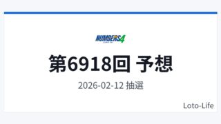 ナンバーズ4ナンバーズ4 第6918回 予想(結果・振り返り) ナンバーズ4(2026年2月12日)の予想番号を掲載します。本記事は過去データを参考にした「予想・分析メモ」であり、当選を保証するものではありません。予想番号予想10680予想21070予想32651予想48059予想58250直近5回の抽... 2026.02.11ナンバーズ4次回予想