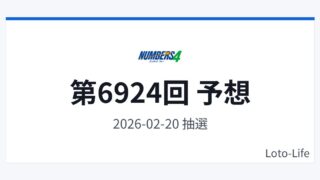 ナンバーズ4ナンバーズ4 第6924回 予想(結果・振り返り) ナンバーズ4(2026年2月20日)の予想番号を掲載します。本記事は過去データを参考にした「予想・分析メモ」であり、当選を保証するものではありません。予想番号予想12870予想22624予想36477予想41223予想51689直近5回の抽... 2026.02.19ナンバーズ4次回予想