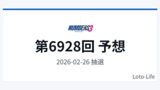 ナンバーズ3ナンバーズ3 第6928回 予想(結果・振り返り) ナンバーズ3(2026年2月26日)の予想番号を掲載します。本記事は過去データを参考にした「予想・分析メモ」であり、当選を保証するものではありません。予想番号予想1306予想2176予想3359予想4273予想5193直近5回の抽選結果回号... 2026.02.25ナンバーズ3次回予想