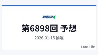 ナンバーズ4ナンバーズ4 第6898回(2026年1月15日)予想 ナンバーズ4(2026年1月15日)の予想番号を掲載します。本記事は過去データを参考にした「予想・分析メモ」であり、当選を保証するものではありません。予想番号予想12273予想23304予想33273予想43103予想52173直近5回の抽... 2026.01.14ナンバーズ4次回予想