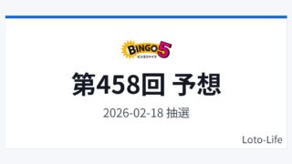 ビンゴ5ビンゴ5 第458回 予想(結果・振り返り) ビンゴ5(2026年2月18日)の予想番号を掲載します。本記事は過去データを参考にした「予想・分析メモ」であり、当選を保証するものではありません。予想番号予想1 4 6 12 20 FREE 23 29 33 40予想2 4 9 11 19... 2026.02.11ビンゴ5次回予想